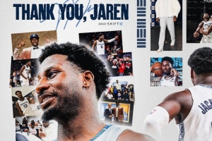 灰熊官推隨后曬圖,感謝小賈倫·杰克遜八年來為灰熊所做的貢獻(xiàn)。官推列舉了期間小賈倫獲得的榮譽(yù):最佳新秀一陣、兩次全明星、兩屆蓋帽王、三次最佳防守陣容、一次最佳防守球員。