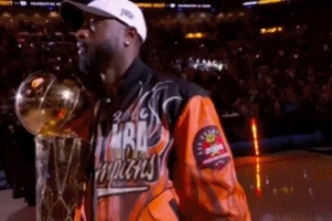 GIF-韋德抱著獎(jiǎng)杯壓軸入場(chǎng)