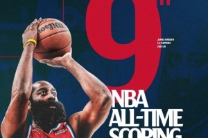 快船官推曬圖,祝賀哈登得分超越奧尼爾升至歷史第九。