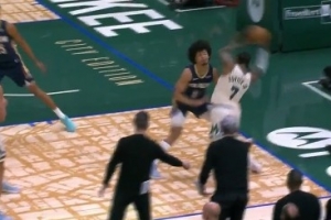 GIF-小凱文·波特進(jìn)攻肘到皮維面部 回放后普通犯規(guī)未升級