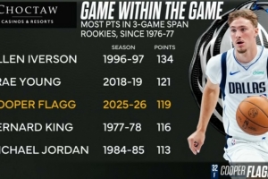 過去三場比賽弗拉格合砍119分,是自76-77賽季新秀連續(xù)三場得分之和的第三高,僅次于艾弗森和特雷·楊。