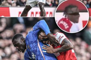 比賽中,布羅比和馬杜埃凱爭(zhēng)搶球權(quán),扯掉了后者的發(fā)帶。馬杜埃凱無奈攤手