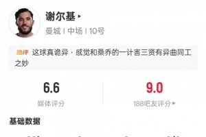體育資訊2月9日訊 英超第25輪焦點(diǎn)戰(zhàn),曼城客場2-1逆轉(zhuǎn)利物浦。謝爾基替補(bǔ)登場,1粒進(jìn)球被吹,貢獻(xiàn)2次搶斷,3次地面對抗成功,1次爭頂成功,評分6.6。