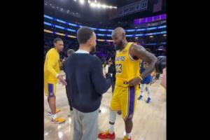 GIF-庫(kù)里詹姆斯賽后交談 海斯試圖介入 但……