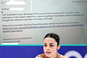 體育資訊02月09日訊 昨天加拿大花樣滑冰運(yùn)動員馬德琳·希扎斯在社媒曬出了一封申請信,寫給她的大學(xué)教授,希望能夠延期提交作業(yè)。