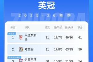 目前米德爾斯堡迎來(lái)六連勝,31輪18勝7平6負(fù)積61分,以2分優(yōu)勢(shì)領(lǐng)跑英冠。蘭帕德執(zhí)教的考文垂近3輪2負(fù)1平,31輪積59分第二。