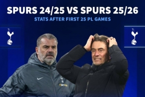 熱刺上賽季、本賽季英超前25輪數(shù)據(jù):