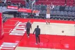 賽后,他獨自在火箭主場進行加練。
