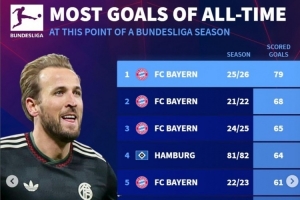 體育資訊2月12日訊 拜仁本賽季在孔帕尼帶領(lǐng)下在各條戰(zhàn)線高歌猛進(jìn),21輪聯(lián)賽已狂轟79球?!掇D(zhuǎn)會市場》統(tǒng)計顯示他們也是同期進(jìn)球最多的德甲球隊。