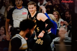 本場比賽,騎士射手梅里爾出戰(zhàn)25分鐘,12投11中,其中三分10中9,另外罰球1中1,狂砍生涯新高32分,還有4籃板1助攻1搶斷1蓋帽的全面數(shù)據(jù)進賬。