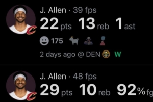 此役,賈勒特·阿倫投籃8投8中,6罰5中,得21分9板1助2蓋帽。正負值+25是全隊最高。