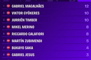Squawka指出,阿森納本賽季聯(lián)賽頭球打進(jìn)11球,英超球隊(duì)之中最多,這是馬杜埃凱職業(yè)生涯至今在英超攻入的第3粒頭球,此前兩粒頭球進(jìn)球來(lái)自于2024年對(duì)陣西漢姆、2025年對(duì)陣?yán)顷?duì)的比賽。