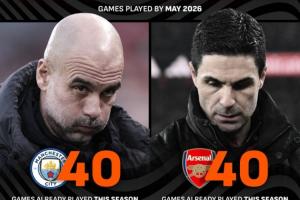 體育資訊02月13日訊 據(jù)統(tǒng)計,在本輪英超過后,阿森納和曼城分別迎來了各自球隊本賽季的第40場比賽,如今兩隊面臨著英超、歐冠、聯(lián)賽杯和足總杯四線作戰(zhàn)。