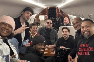 阿夫迪亞曬出一張他和親友及個人團隊成員同乘飛機的機艙內(nèi)合影,并配文:“洛杉磯2026。”
