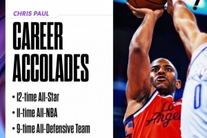 體育資訊2月14日訊 NBA球星克里斯·保羅在社媒宣布退役,結(jié)束職業(yè)生涯。