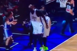 GIF-法爾搶到籃板被太陽老板伊什比亞生搶過來,隨后推人