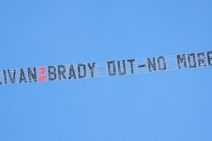 體育資訊2月14日訊 《郵報》報道,由于對西漢姆老板大衛(wèi)·沙利文和卡倫·布拉迪長達15年的管理方式極其不滿,憤怒的球迷選擇在電視直播期間租用飛機,在球場上空拉起橫幅,直接打出“沙利文與布拉迪走人,不要再廢話了”的標語。