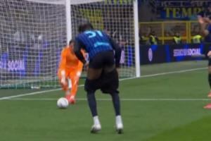 體育資訊02月15日訊 國米vs尤文開場3分鐘,比塞克防下伊爾迪茲,這下倒地時比塞克褲子掉了!