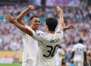 體育資訊2月15日訊 西甲第24輪,皇家馬德里主場迎戰(zhàn)皇家社會(huì),比賽第6分鐘,阿諾德精妙傳中助攻,貢薩洛破門,皇馬1-0領(lǐng)先。