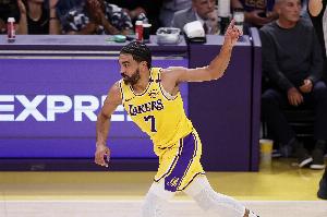 第一節(jié),湖人后衛(wèi)文森特外線神準(zhǔn),替補(bǔ)4分49秒三分3中3拿到9分1籃板,正負(fù)值+7。