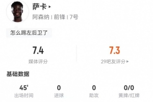 下一篇: 熱蘇斯本場(chǎng)數(shù)據(jù):1進(jìn)球1過(guò)人成功+16次丟失球權(quán),評(píng)分7.6