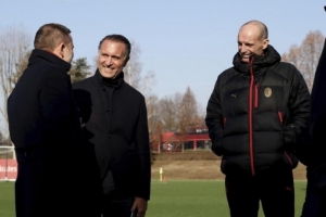 當(dāng)?shù)貢r間2月15日,卡爾迪納萊來到米蘭內(nèi)洛,和全隊及教練組進(jìn)行了會面,陪同的有米蘭CEO弗拉尼、米蘭顧問伊布、體育總監(jiān)塔雷??柕霞{萊觀看了球隊的部分訓(xùn)練,并和主帥阿萊格里進(jìn)行了長時間交談,還祝賀了門將邁尼昂成功續(xù)約,并對邁尼昂在更衣室內(nèi)發(fā)揮的作用表示高興。