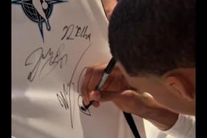 約基奇幽默要求文班亞馬在自己的球衣上簽名并畫一個外星人,文班照做。