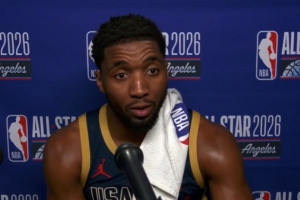 體育資訊2月16日訊 NBA全明星正賽冠軍賽,美國星條隊21-47不敵美國新星隊,賽后,多諾萬·米切爾接受了記者采訪。