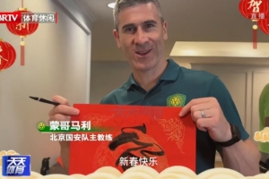 北京國(guó)安將帥用寫(xiě)福字的方式向所有支持熱愛(ài)他們的球迷送上祝福,一起喜迎馬年新春。其中國(guó)安主帥蒙哥馬利還用中文給大家拜年,“新春快樂(lè)”。
