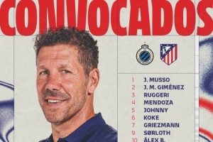 體育資訊2月17日訊 北京時(shí)間2月19日凌晨,馬競(jìng)將在歐冠附加賽首回合比賽中客場(chǎng)對(duì)陣布魯日,馬競(jìng)公布了此役的球員名單。