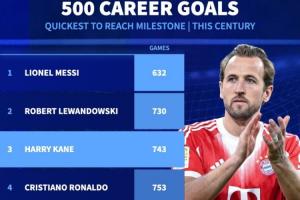 體育資訊02月17日訊 拜仁在上周末德甲3-0擊敗不萊梅,凱恩梅開二度,并解鎖了生涯500球里程碑。