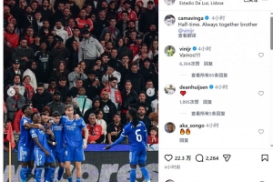 維尼修斯慶祝進(jìn)球時(shí)疑似遭到種族歧視,皇馬中場(chǎng)卡馬文加社媒曬出球員們與維尼修斯的合照,配文:“中場(chǎng)休息,永遠(yuǎn)與你同在,兄弟,維尼修斯?!?/p>