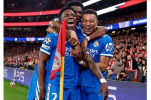 比賽第二天早上,皇馬官方社媒發(fā)布第一條動(dòng)態(tài),曬出維尼修斯、姆巴佩、瓊阿梅尼擁抱慶祝的照片,并配上了藍(lán)色心形表情符號(hào)。