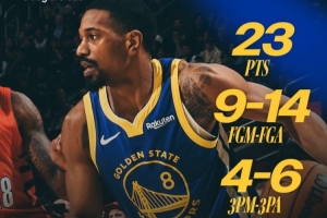 本場比賽,勇士球員梅爾頓,他替補出戰(zhàn)僅18分鐘,14中9,三分6中4,罰球1中1怒轟23分2籃板1助攻,正負值+20!
