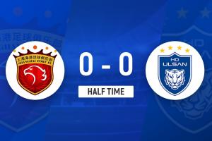 上半場比賽結(jié)束,上海海港0-0蔚山HD。