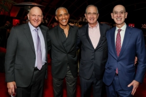 體育資訊2月18日訊 今天,快船官方發(fā)布了鮑爾默、奧巴馬、布萊恩·羅伯茨和蕭華的合照。