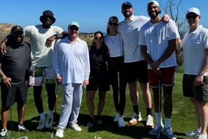 體育資訊2月19日訊 今日塔圖姆更新IG動(dòng)態(tài),曬出自己與詹姆斯、樂福一起打高爾夫的相關(guān)動(dòng)態(tài)。