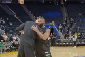 將要首秀的新援波爾津吉斯賽前進(jìn)行了熱身,而他的綠軍前隊友杰倫·布朗與懷特則是上來與其進(jìn)行了互動。
