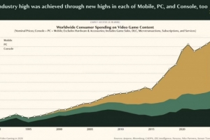 體育資訊2月20日訊 Epyllion 公司的 Matthew Ball 發(fā)布《2026 年視頻游戲現(xiàn)狀報(bào)告》,稱 2025 年全球游戲內(nèi)容銷售額達(dá)1956 億美元(注:現(xiàn)匯率約合 1.35 萬(wàn)億元人民幣),同比增長(zhǎng) 5.3%,不過(guò)私人投資卻暴跌 55%。