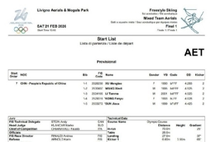體育資訊2月21日訊 米蘭冬奧會(huì)自由式滑雪空中技巧混合團(tuán)體賽決賽將于北京時(shí)間2月21日17點(diǎn)45分進(jìn)行,中國隊(duì)將于最后一位出場(chǎng)。