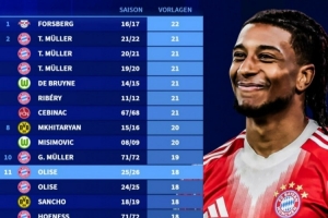 體育資訊2月21日訊 德轉(zhuǎn)盤點了德甲歷史單賽季助攻榜,其中本賽季奧利塞22輪過后取得18次助攻,有望打破歷史紀(jì)錄,具體榜單如下:
