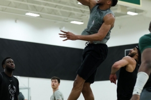 體育資訊2月22日訊 今日雄鹿球星字母哥曬出訓(xùn)練暴扣照。