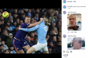 哈蘭德也在賽后通過社媒曬出自己和丹·伯恩互相拉扯的貼身肉搏照,并幽默調(diào)侃:“辦公室里的又一天。”