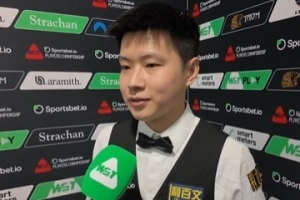 趙心童: 對(duì)。其實(shí)整場(chǎng)比賽我跟馬克·艾倫都打得不是特別理想。我覺(jué)得今天的球臺(tái)速度有點(diǎn)慢,所以我跟馬克·艾倫在很多走位上面都走得不是特別順利。所以到最后其實(shí)我們都不是以最好的狀態(tài)在進(jìn)行這場(chǎng)比賽,但我很高興能拿下這場(chǎng)比賽。