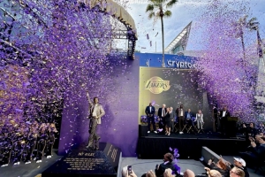 體育資訊2月23日訊 今日湖人為球隊(duì)傳奇主教練帕特·萊利舉行雕像揭幕儀式。