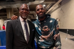 賽后,隨隊(duì)來到洛杉磯的老鷹名宿、現(xiàn)任球隊(duì)籃球事務(wù)副總裁威爾金斯也和詹姆斯打了照面。他還曬出了兩人的合照,并配文:“比賽后和你聊上幾句真的很開心,總是很享受這種輕松交流的時(shí)刻?!?/p>