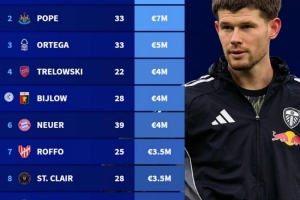 體育資訊2月23日訊 德轉(zhuǎn)列今夏合同到期十大門將身價,梅斯利耶1200萬歐居首。