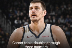據(jù)統(tǒng)計(jì),約基奇本場比賽第三節(jié)就達(dá)成三雙,這是他生涯第81次三節(jié)三雙,play-by-play時(shí)代(官方有文字記錄統(tǒng)計(jì)、1996-97賽季)以來NBA最多。