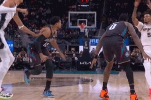 GIF-卡斯?fàn)栠B線文班內(nèi)線扣籃 馬刺開場(chǎng)11-2打?;钊?/p>
