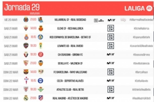 體育資訊2月24日訊 西甲官方公布了聯(lián)賽第29輪各場比賽時間,3月22日21點巴薩主場對陣巴列卡諾,23日凌晨4點皇馬vs馬競。